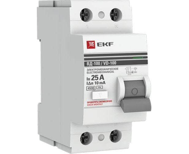 УЗО EKF PROxima ВД-100 2P (elcb-2-25-10-em-pro) 25А/10мА электромеханическое