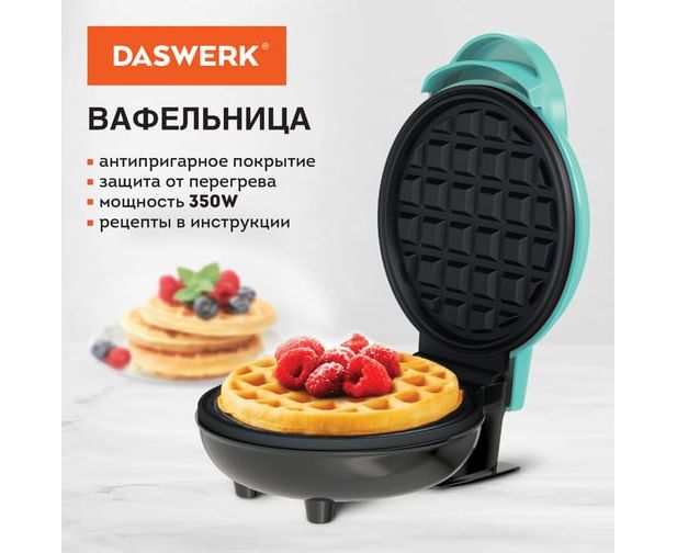 Электровафельница антипригарная DASWERK WM-3 — идеальное решение для любителей вкусных вафель! Эта электрическая вафельница мощностью 350 Вт позволяет быстро и удобно готовить венские и бельгийские вафли, а также овощные и сырные варианты. Благодаря диаметру жарочной поверхности 12 см, вы сможете выпекать аппетитные вафли за считанные минуты.