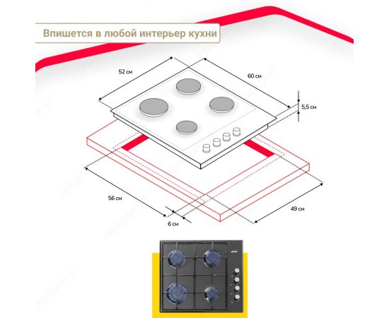 Размер ниши для встраивания (ВхШхГ), см 5.7 х 56 х 49