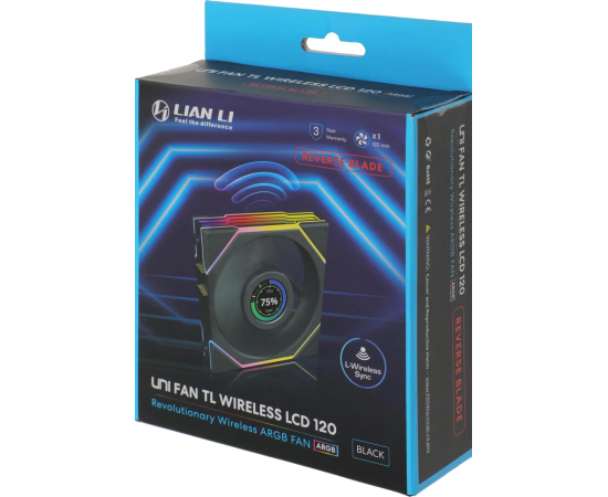 Вентилятор Lian-Li Uni Fan TL Wireless LCD 120 LCD Reverse ARGB (G99.12RTLLCD1W1B.R0) 120х124x28 черный 4-pin 31дБ Ret