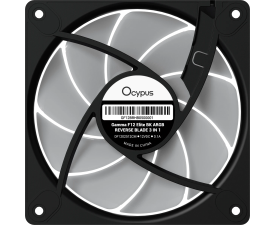 Вентилятор Ocypus Gamma F12 Elite BK ARGB Reverse Blade 3 in 1, 120x120x25mm, 4-Pin PWM, 600-1800 RPM, 26 DBA Max, Hydro Bearing