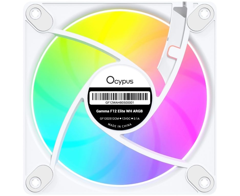 Вентилятор Ocypus Gamma F12 Elite WH ARGB Reverse Blade 3 IN 1, 120x120x25mm, 4-Pin PWM, 600-1800 RPM, 26 DBA Max, Hydro Bearing
