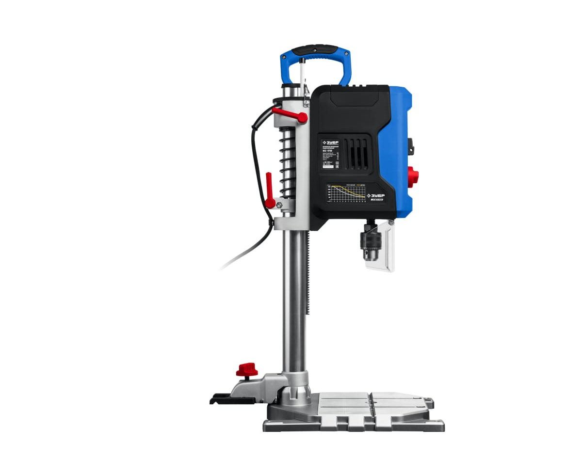 Вертикально-сверлильный станок ЗУБР Профессионал 750 Вт, 13 мм, настольный ВСС-П750 используется для точных работ. Обеспечивает быстрое и качественное сверление отверстий в различных материалах (при установке соответствующих типов сверл). Быстрозажимное устройство позволяет надёжно фиксировать даже круглые заготовки, обеспечивая высокую точность выполняемых отверстий. Лазерный указатель точно указывает точку вхождения сверла в материал, обеспечивая быстрое получение точного результата.