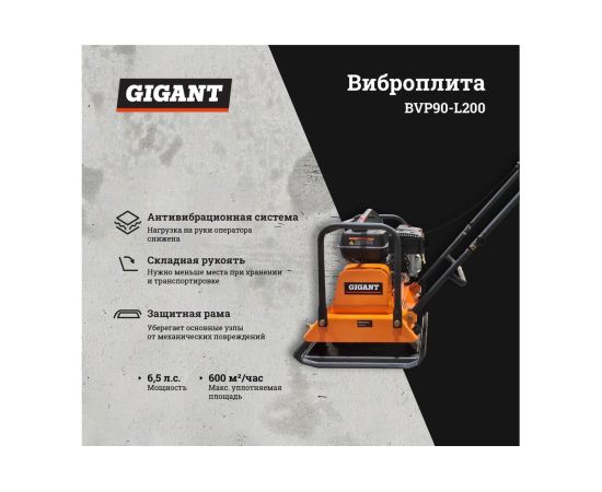 Виброплита Gigant BVP90-L200 - профессиональное строительное оборудование, которое активно используется при ремонте дорожных покрытий, уплотнения щебня и песка, а также асфальтобетонных смесей.