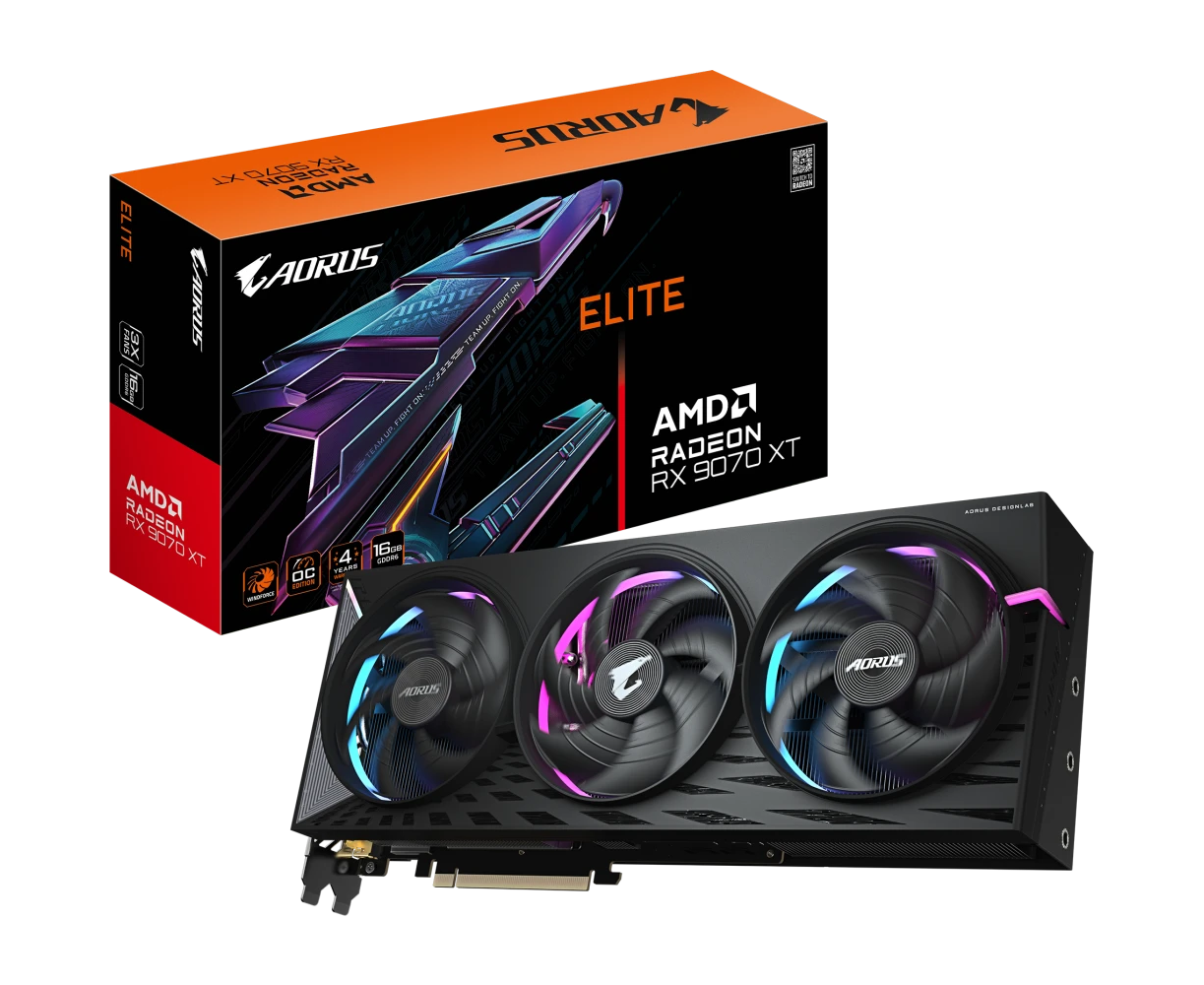 Видеокарта Gigabyte RX9070XT Aorus E 16GB (GV-R9070XTAORUS E-16GD) GDDR6 256bit 2xDP 2xHDMI 3Fan RTL
