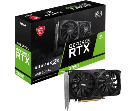 Видеокарта MSI Nvidia GeForce RTX 3050 6 Гб (3050 Ventus 2X E 6G OC) GDDR6 96 бит PCIE 4.0 16x 2xВыход HDMI 1xВыход DisplayPort