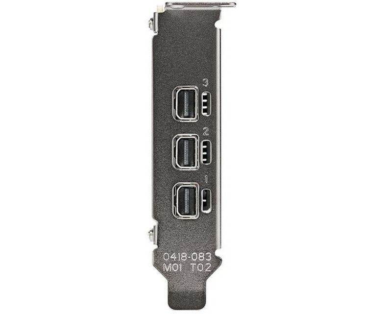 в комплекте низко- (LP) и полнопрофильная (ATX) крепежные планки и 4 адаптера miniDP-to-DP,