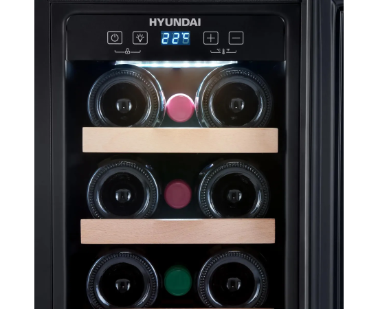 Винный шкаф Hyundai HBWC 0831 SU, вместимость: 20 бутылок, 56л, 82см, черный