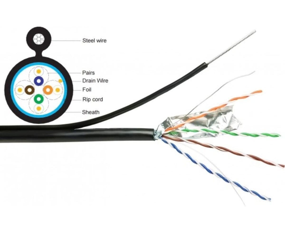 Технические характеристики 5Bites express ftp/solid/5e/24awg/copper/pe/black/outdoor/msgr/drum/305m FS5525-305BPE-M