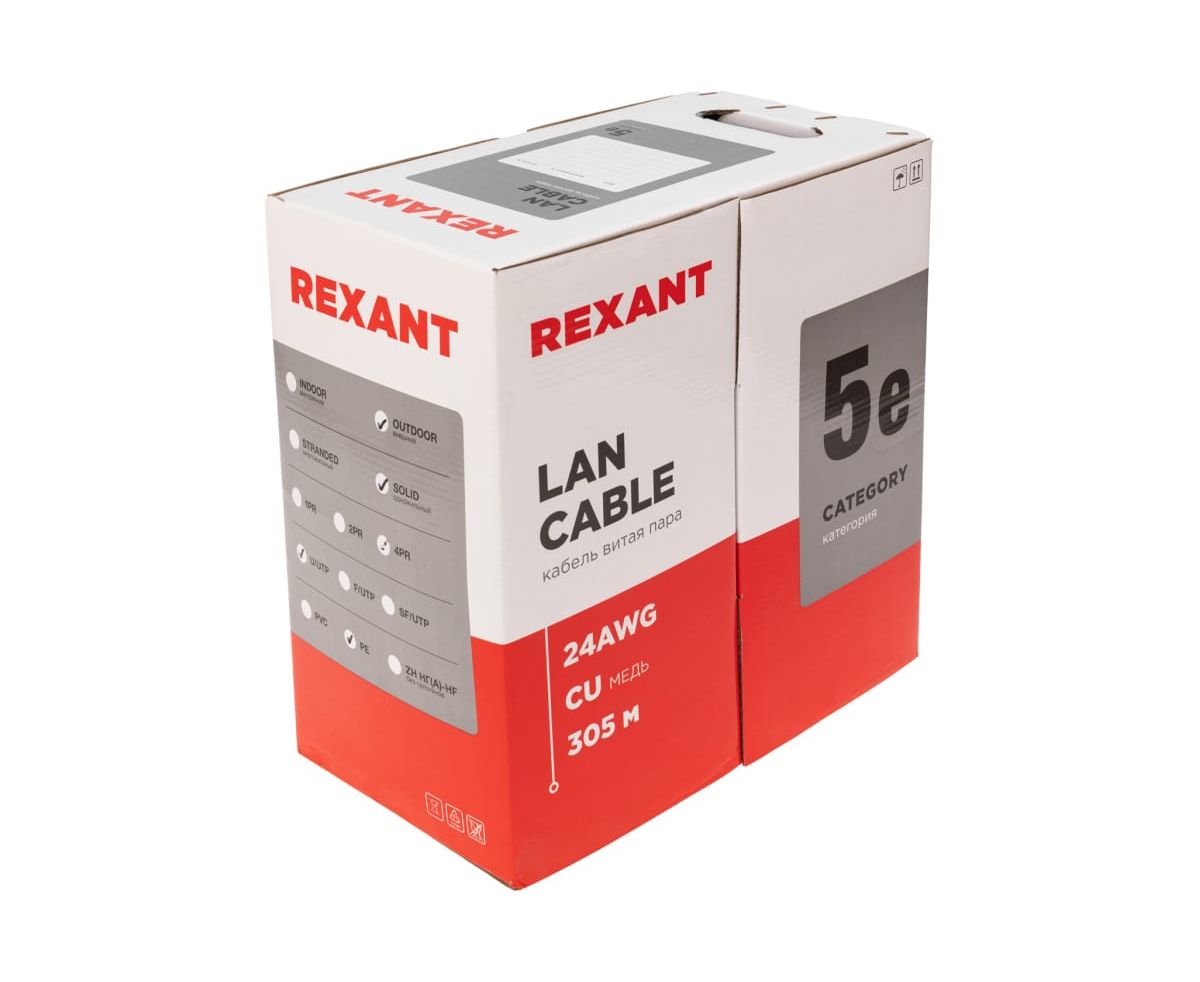Технические характеристики REXANT OUTDOOR витая пара, 4PR, 24AWG, CAT5e 01-0045