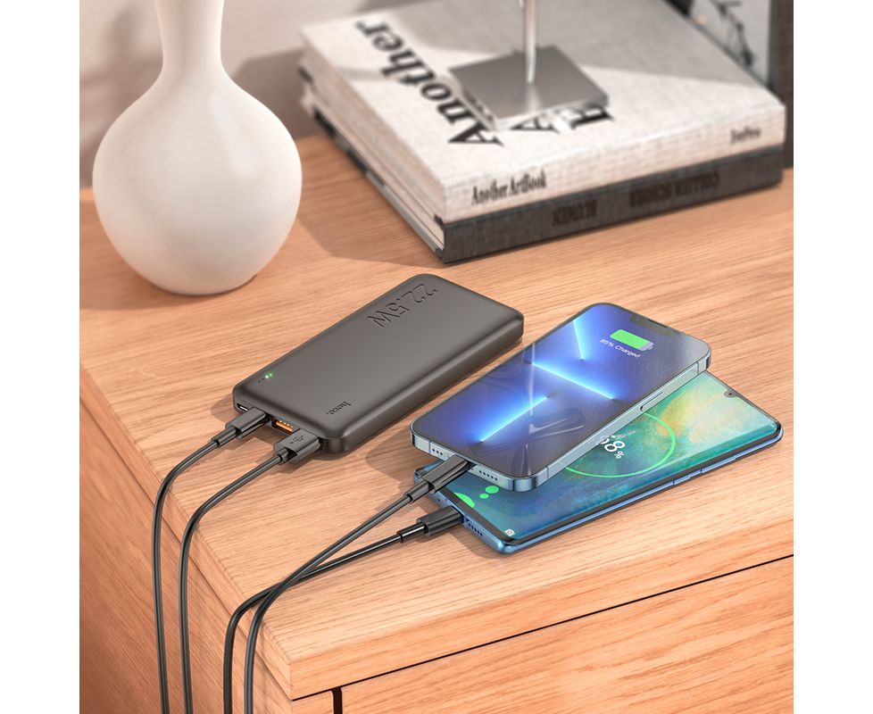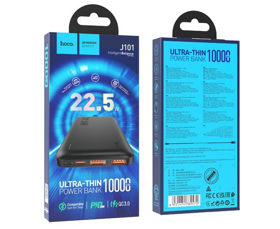 Внешний аккумулятор 10000mAh 2USB+ micro USB+Type-C 3.0A PD 22.5W c LED-индикатором Hoco J101 (Black)
