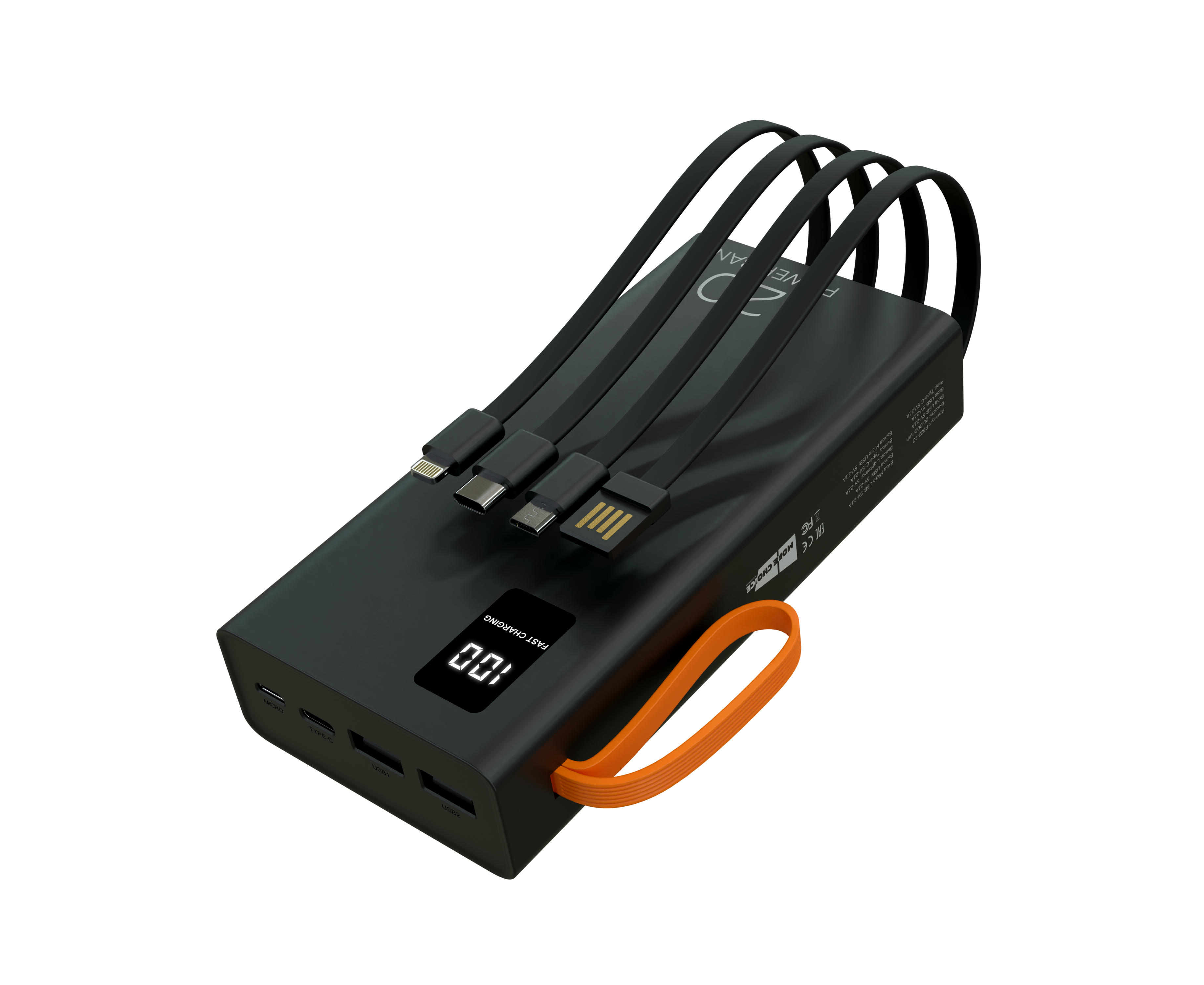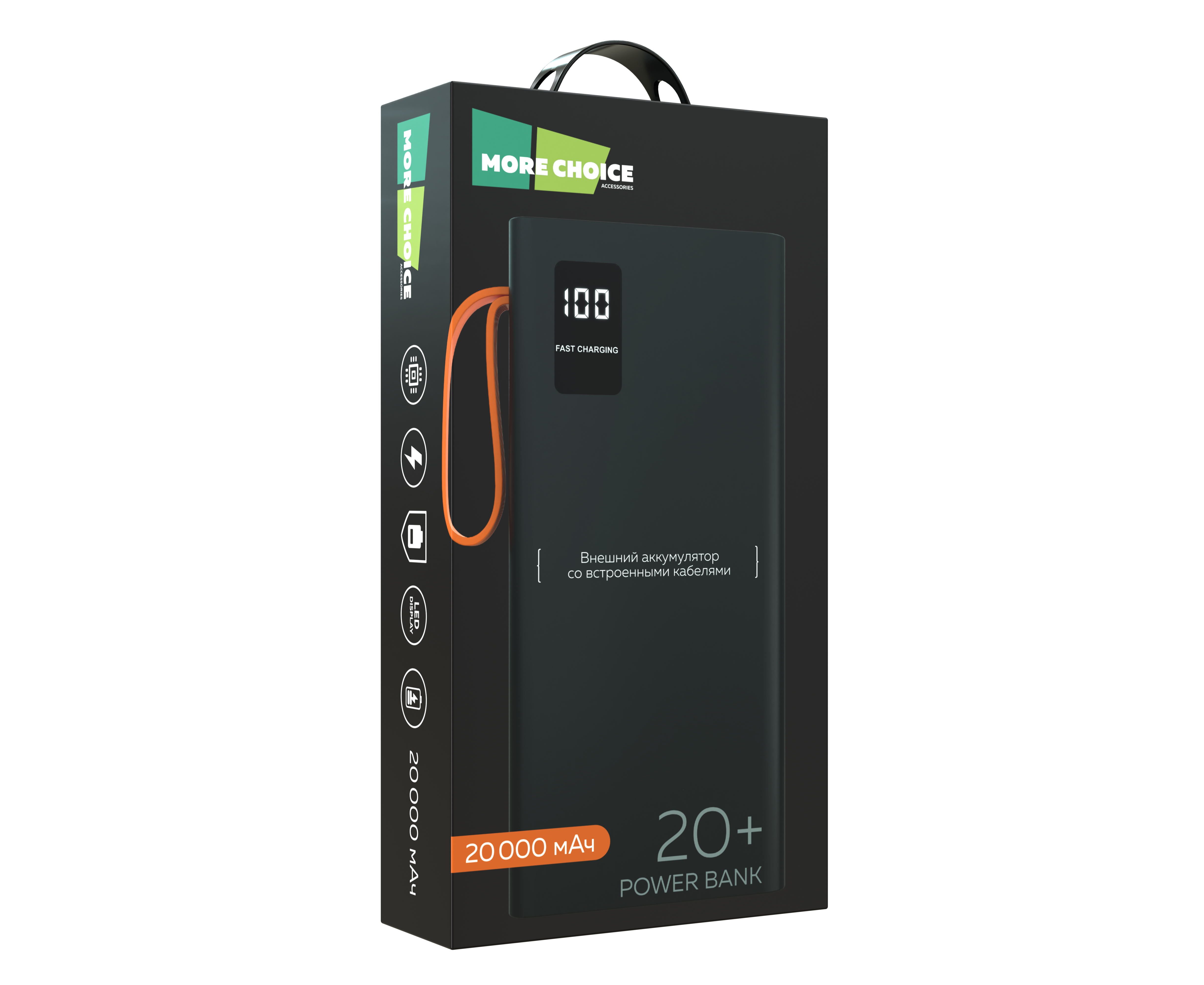 Внешний аккумулятор 20000mAh 2USB 2.1A More choice PB22-20 с кабелем (Black)