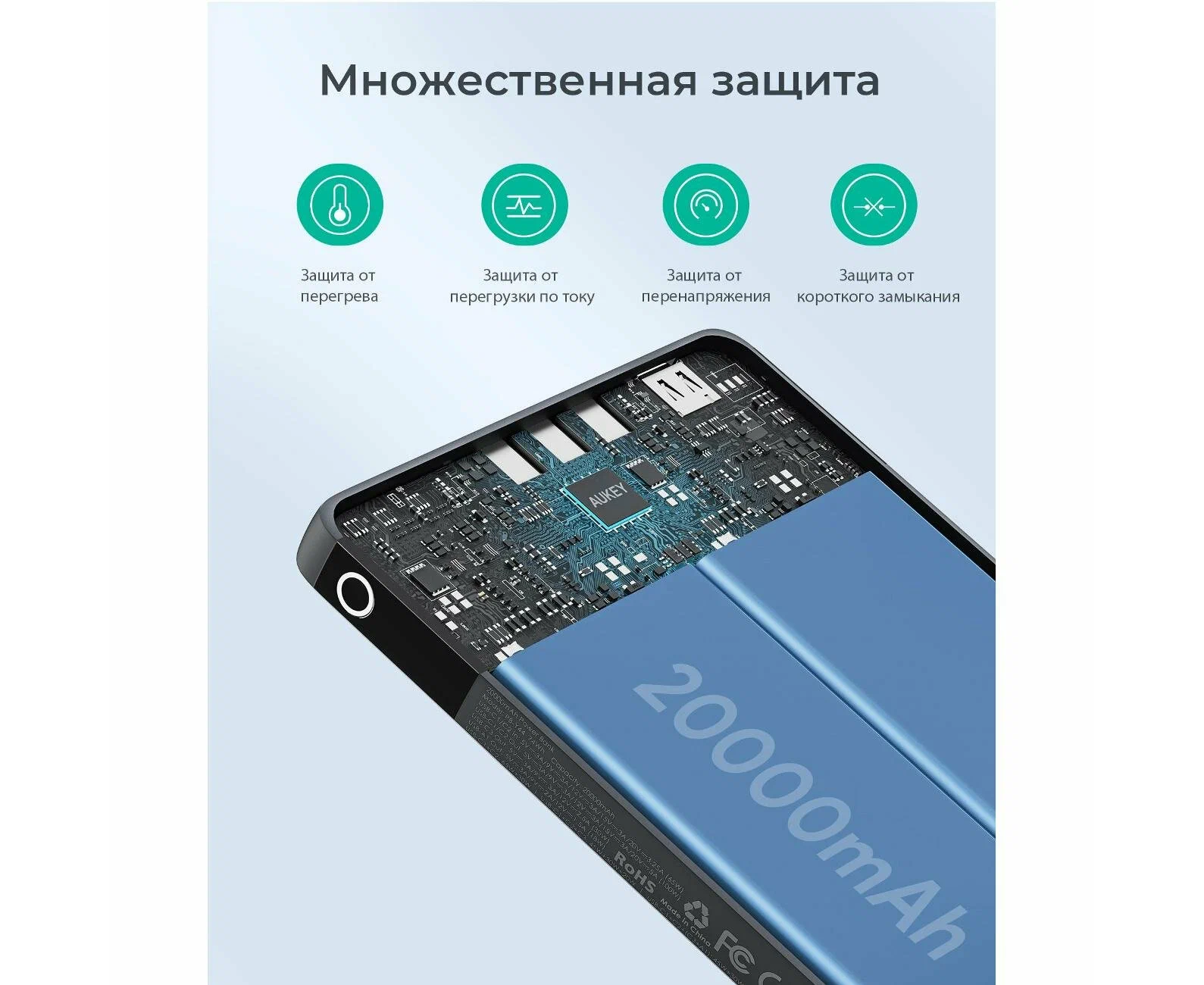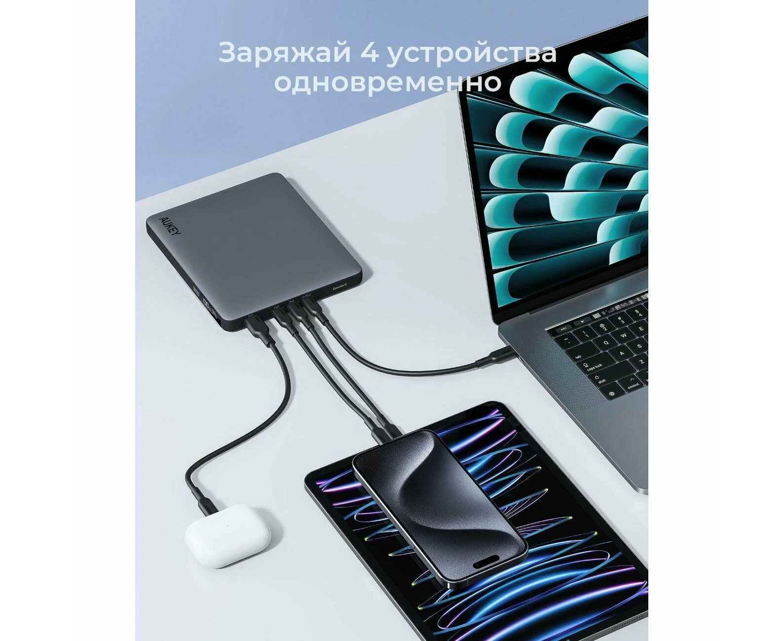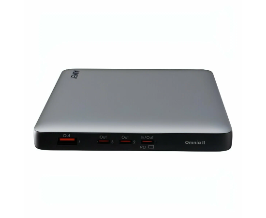 Серый внешний аккумулятор Aukey Sprint X 20000 100W (PB-Y44) оснащен функцией сквозного заряда, позволяющей пополнять энергию другой батареи во время заряда своей.