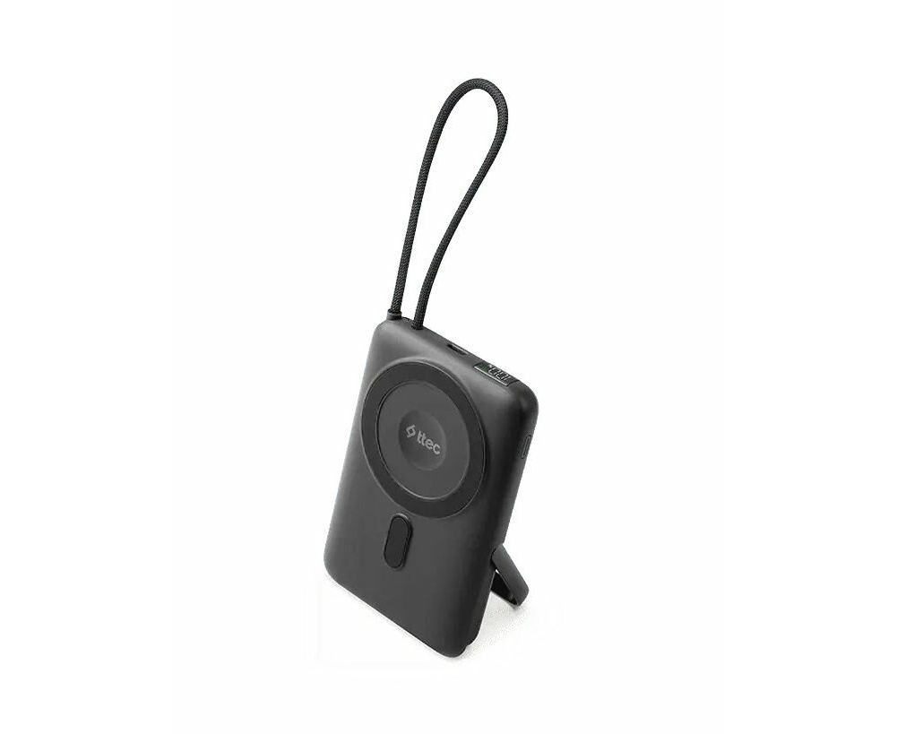 Внешний аккумулятор беспроводной TTEC Recharger M LCD 10000 mAh. MagSafe PD 20W Powerbank с кабелем USB-C и подставкой