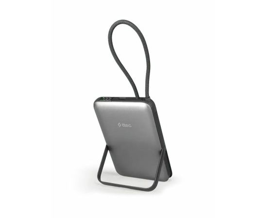 Внешний аккумулятор беспроводной TTEC 2BB230GR Recharger M LCD 10000 mAh. MagSafe PD 20W Powerbank с кабелем USB-C и подставкой серый