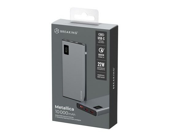 Внешний аккумулятор Breaking Metallica, USB-A + 2USB-C, 10 000 mAh, 22,5W, PD, QC 3.0, LED (Графит)