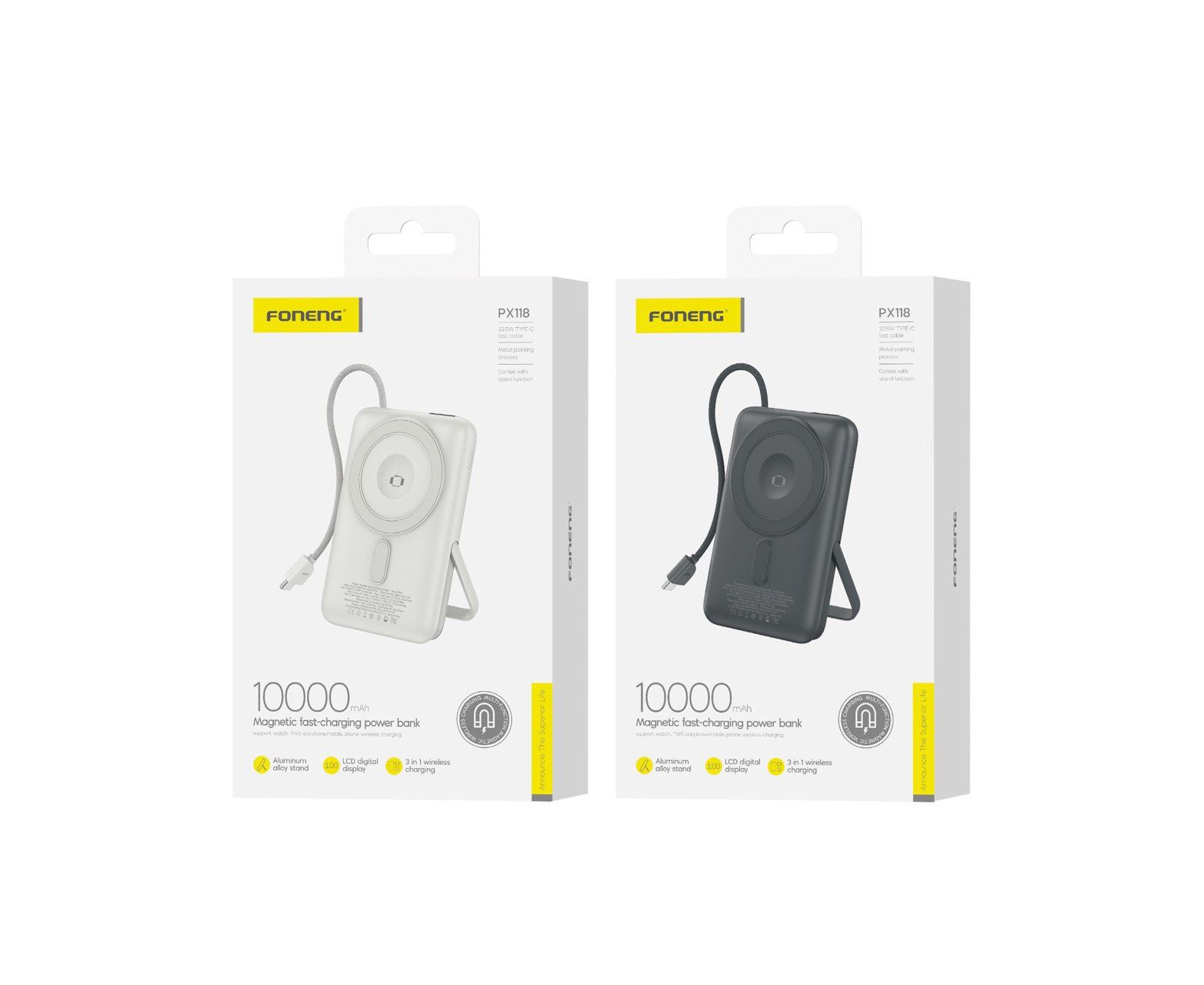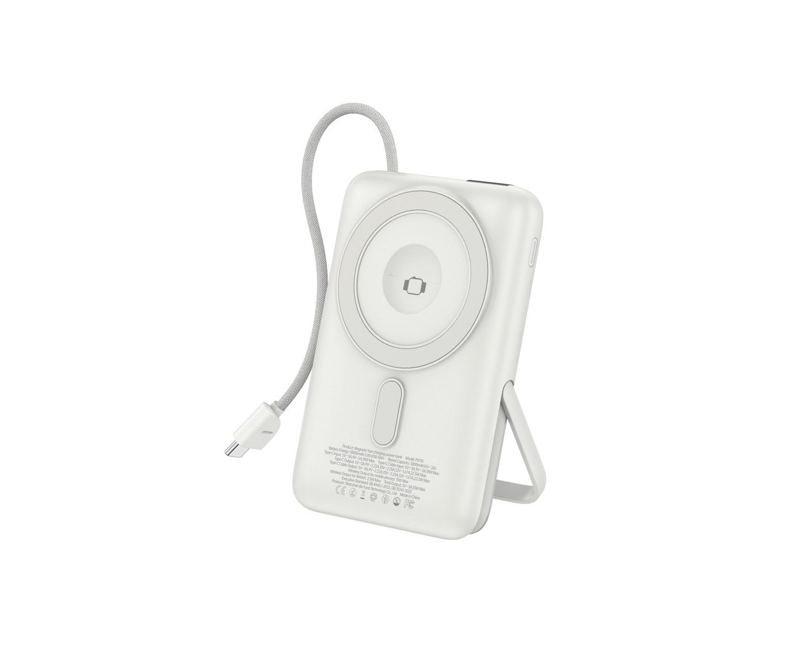 Внешний аккумулятор Foneng PX118 Magnetic 10000 mAh 22.5W , встроенный кабель Type-C (Silver)