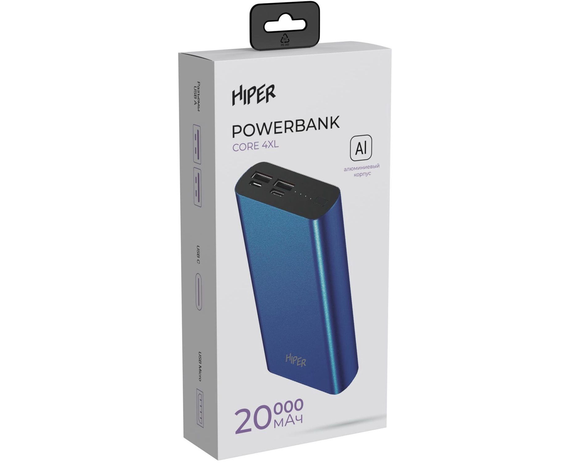Внешний аккумулятор HIPER CORE 4XL Metal 20000 мАч тёмно синий