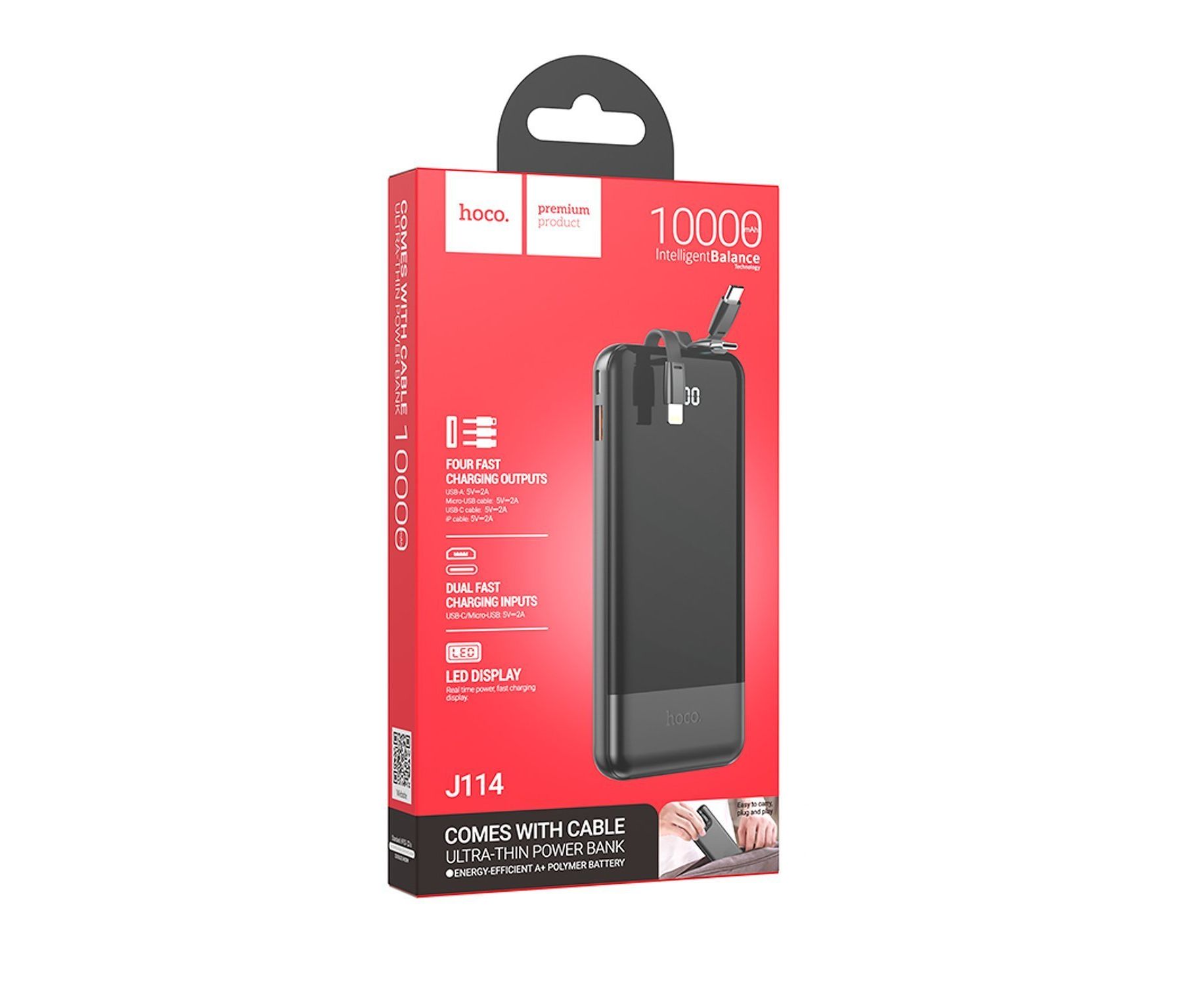 Внешний аккумулятор Hoco J114 10000mAh Micro/Type-C/USB/Type-C/Micro/Lightning (black)(226955)