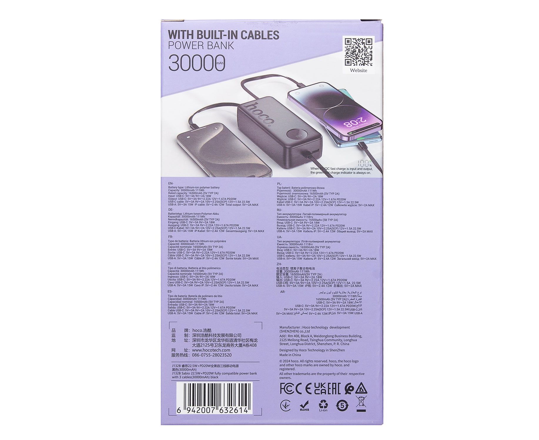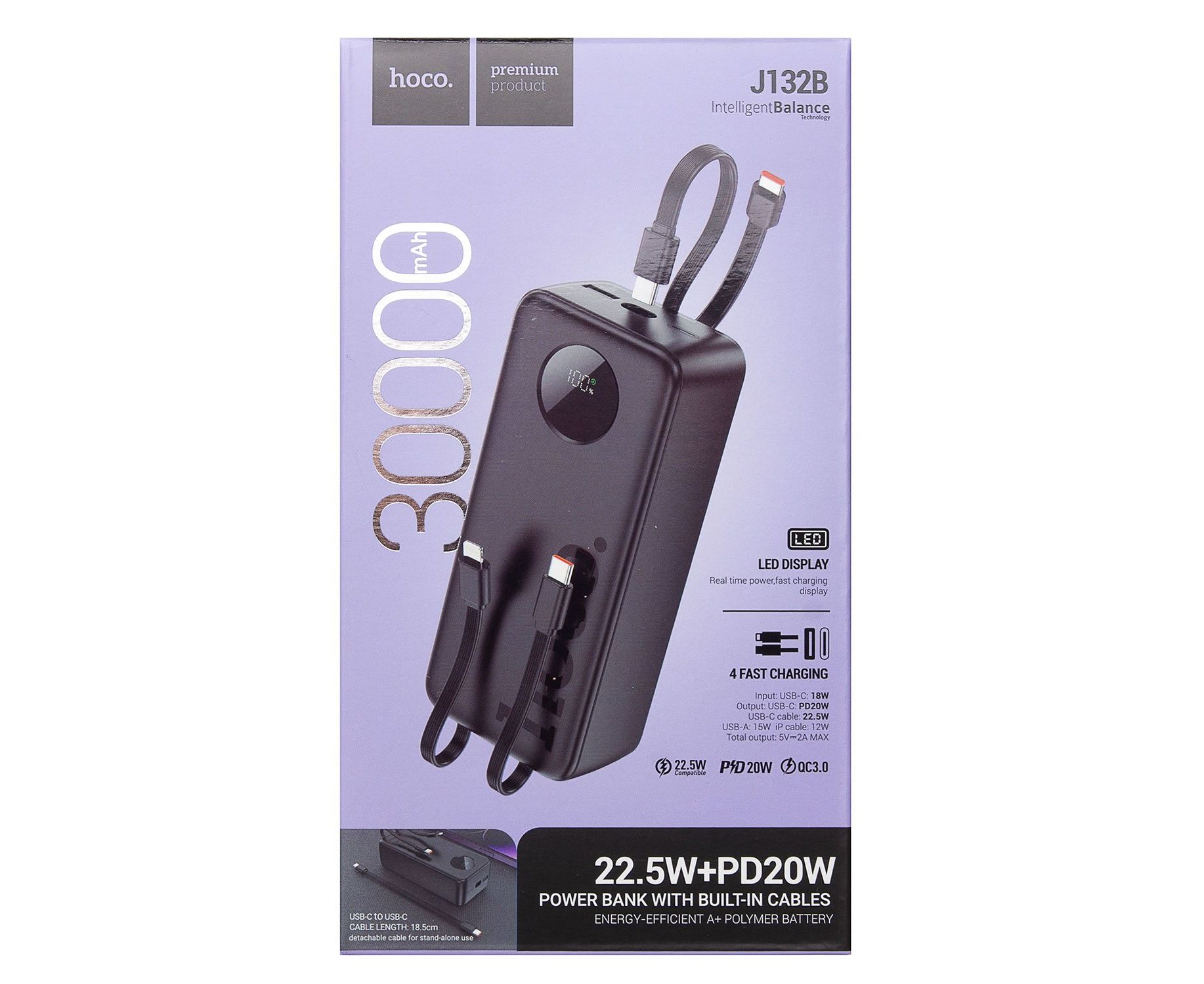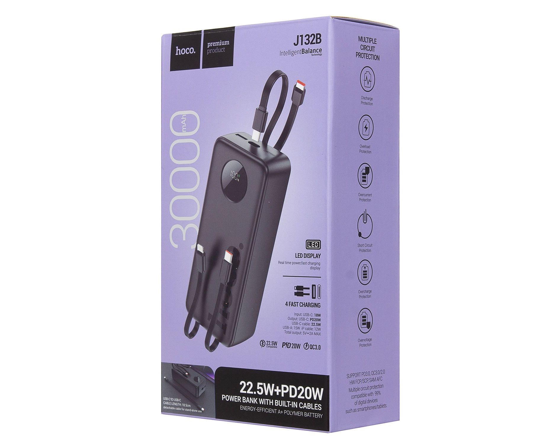 Внешний аккумулятор Hoco J132B 22.5W+PD20W 30000mAh Type-C/USB/Type-C (black)(235803)