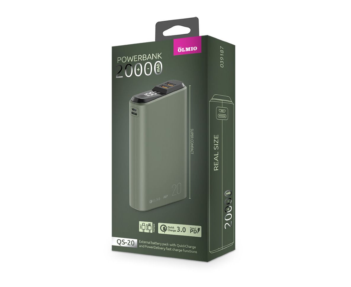 Аккумулятор внешний резервный OLMIO QS-20 (39187) 20000mAh тёмно-зелёный
