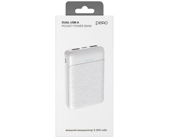 Внешний аккумулятор PERO PB01 5000 mAh, Li-Pol, output 2xUSB-A 2.1A, белый