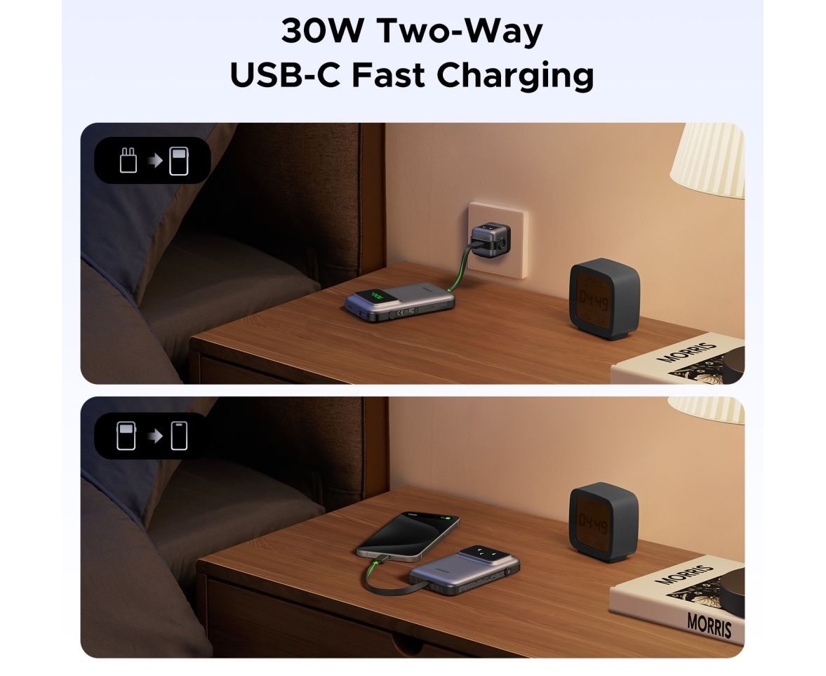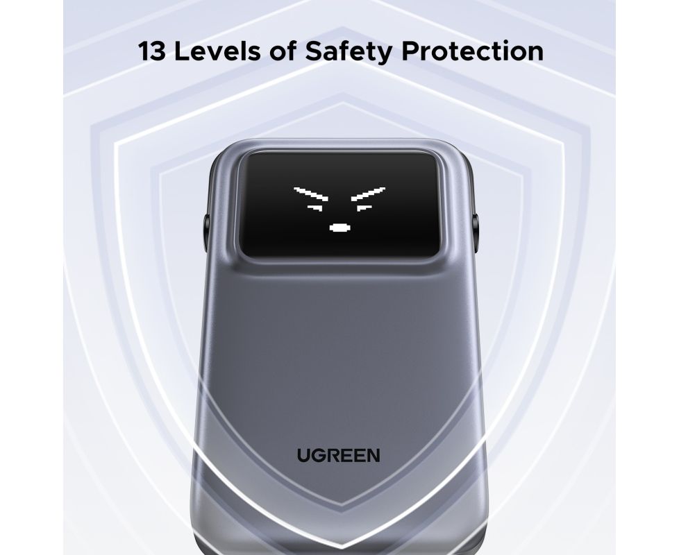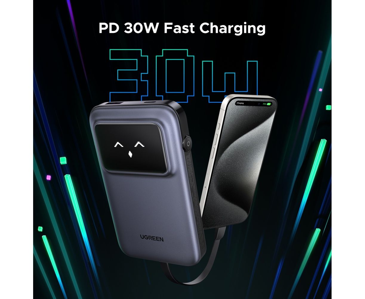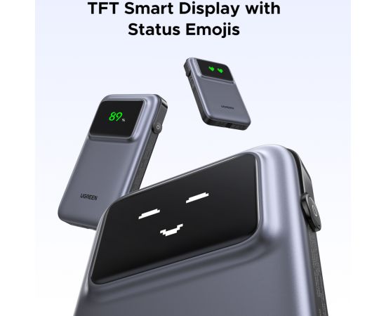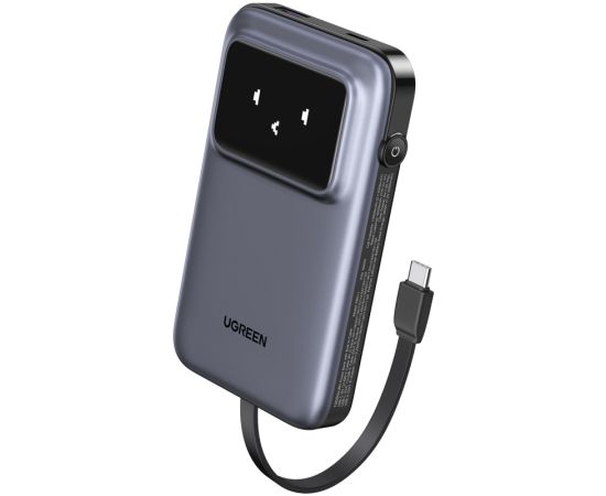 Внешний аккумулятор UGREEN PB511 (35603B) UNO 10000mAh 30W with Display&Build-in USB-C Cable - Gray