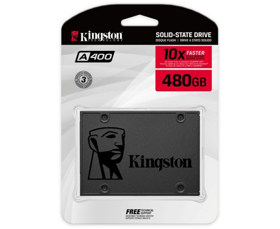 Внутренний SSD Kingston 480GB A400, SATA-III, R/W - 450/500 MB/s, 2.5", TLC