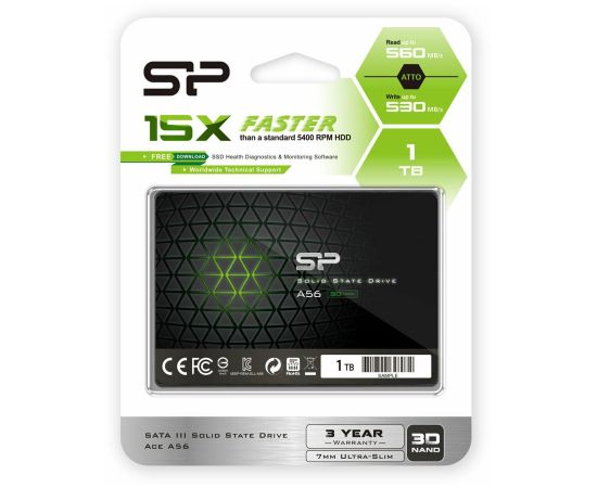 Внутренний SSD Silicon Power 1TB A56, SATA-III, R/W - 560/530 MB/s, 2.5", TLC