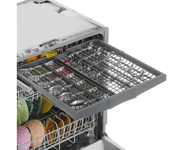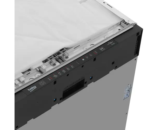 Встраиваемая посудомоечная машина Beko BDIN15560 с 3 корзинами, отдельными полками для чашек и складными держателями для тарелок вмещает 15 комплектов. Верхний разбрызгиватель улучшает качество мойки при полной загрузке камеры. ПММ оповещает об окончании программы звуковым сигналом и лучом на полу. Автооткрывание двери для сушки посуды сокращает потребление энергии.