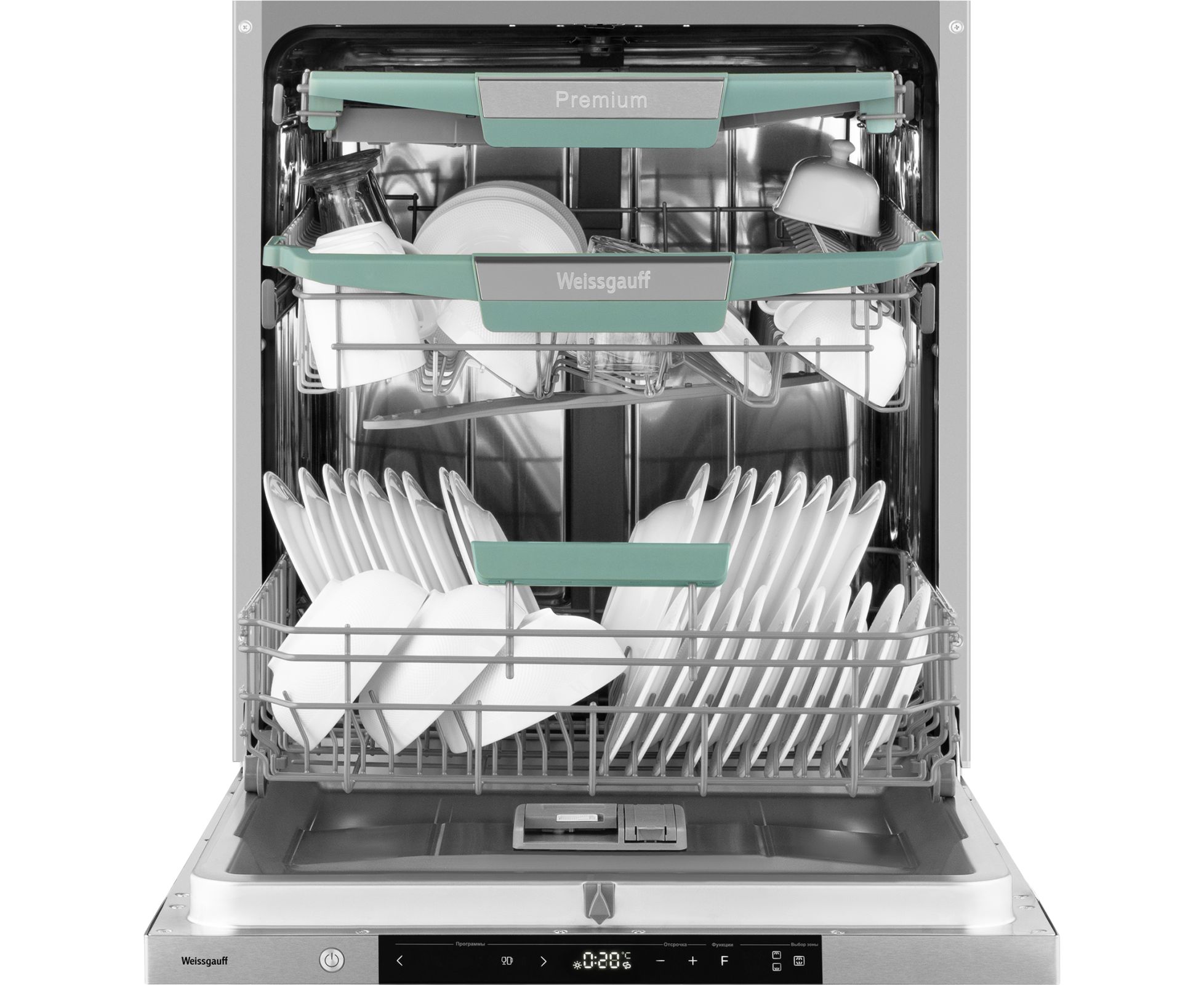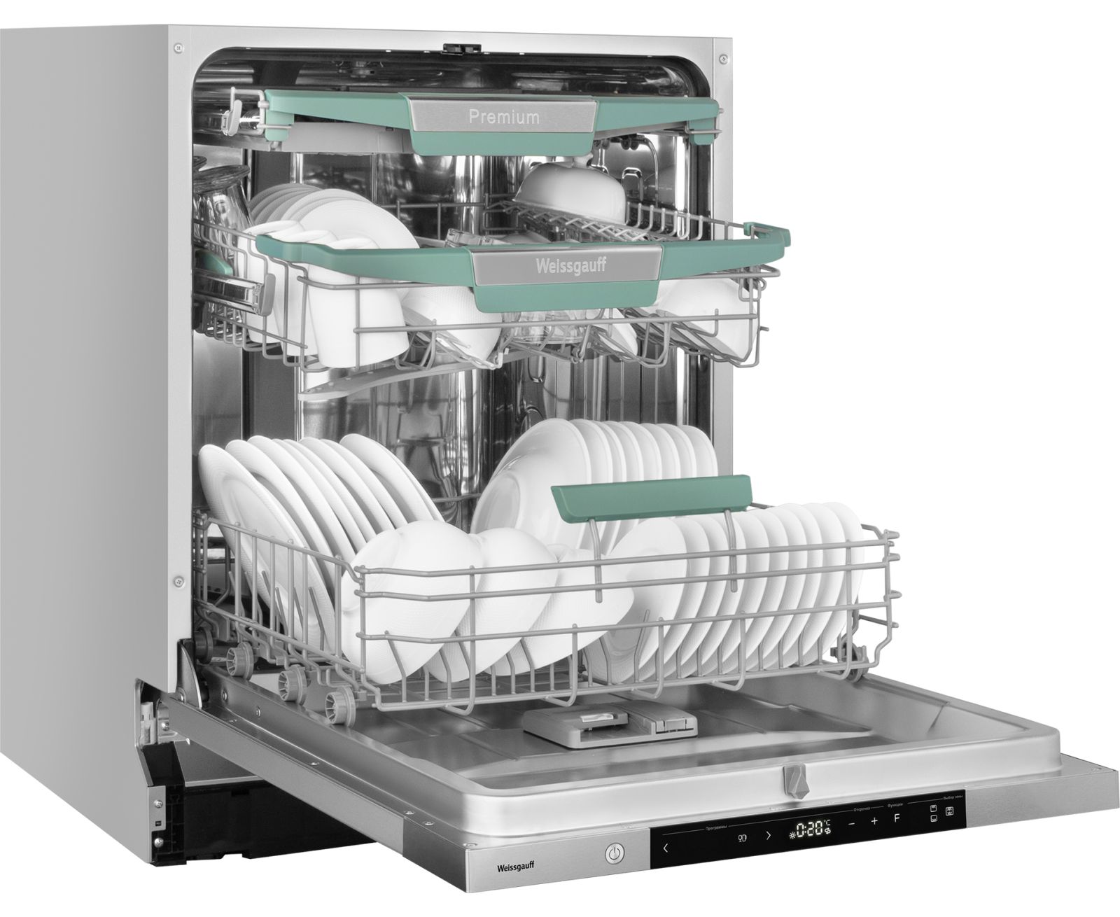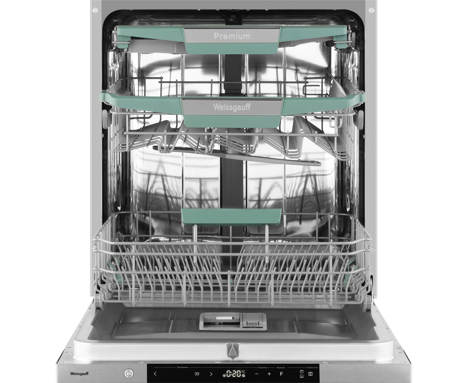 Полноразмерная посудомоечная машина Weissgauff, оснащенная проекцией времени до окончания цикла работы на пол, инверторным двигателем и функцией автоматического открытия дверцы, не только удивит богатством функциональных решений, но и обеспечит идеальный результат: 3 корзины позволят расположить посуду оптимальным образом для достижения наилучшего качества мытья, а наличие 8 программ для мытья позволит подобрать оптимальный режим в зависимости от количества посуды и степени загрязнения.