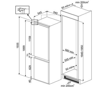 Характеристики Встраиваемый холодильник Smeg C8194TNE