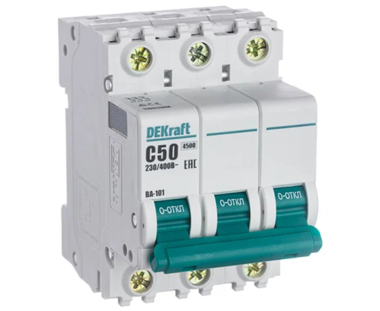 Выключатель автоматический DEKraft ВА-101 11083DEK 3Р 50А х-ка C 4,5кА