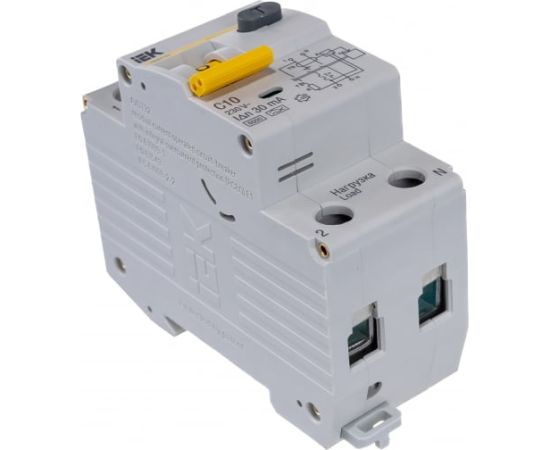 Автоматический выключатель дифференциального тока 1п+N 2мод. C 10A 30mA тип A 6kA IEK АВДТ-32 MAD22-5-010-C-30 123193 обеспечивают надежную защиту человека от удара электрическим током при повреждении изоляции различных электроустановок. Предотвращает риск возникновения пожара при утечке тока на землю, а также защищает от перегрузки и короткого замыкания. Устройство широко используется для защиты групповых линий розеток наружной установки и розеток/выключателей в подвалах или гаражах.