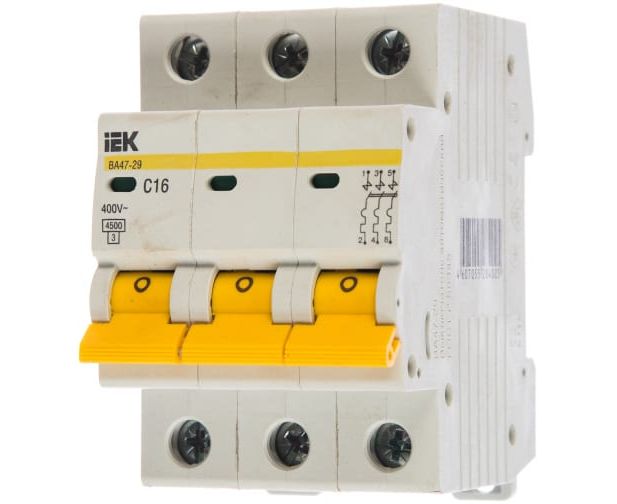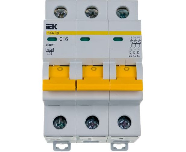 Выключатель IEK ВА47-29 (MVA20-3-016-C) автоматический 16A тип C 4.5kA 3П 400В 3мод белый (упак.:1шт)