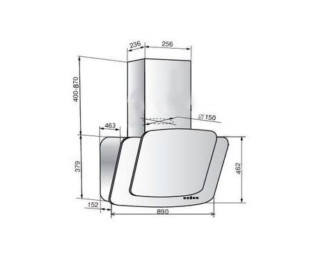 Ширина встраивания вытяжки, см: 89