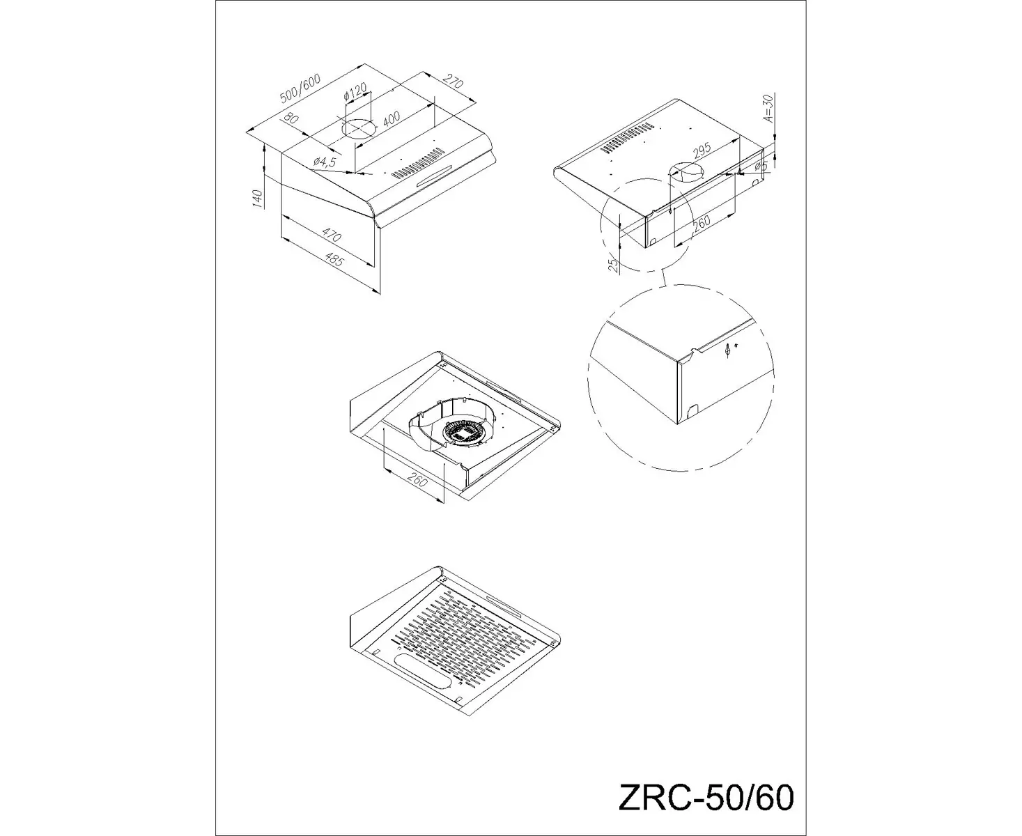 Диаметр отверстия воздуховода, мм