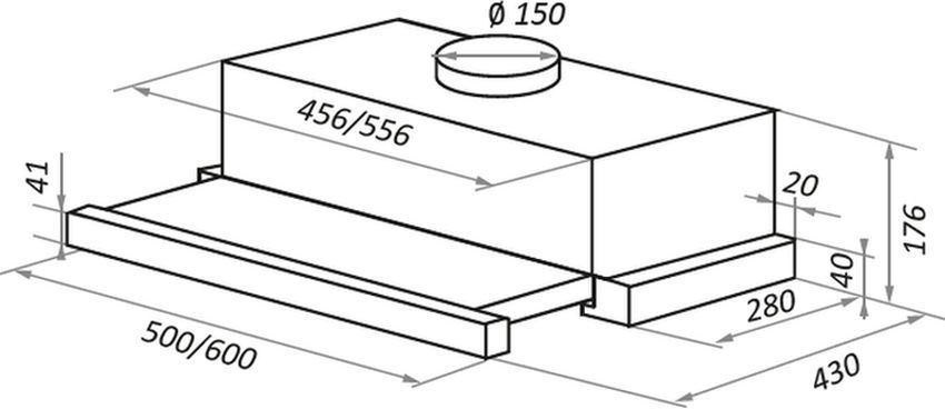 Ширина вытяжки: 600 мм