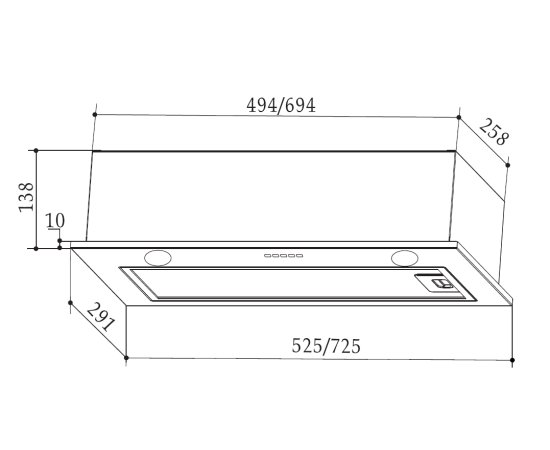 Эффективная работа в помещении площадью до 25 м2, Надежный электронный блок управления, Таймер автоотключения, Интегрированное LED-освещение, Алюминиевый жировой фильтр, Возможность установки угольного фильтра