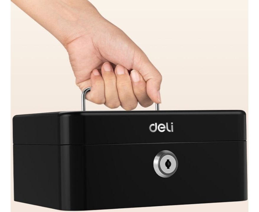 Ящик для денег Deli ET500 90x200x160 черный металл 1.2кг