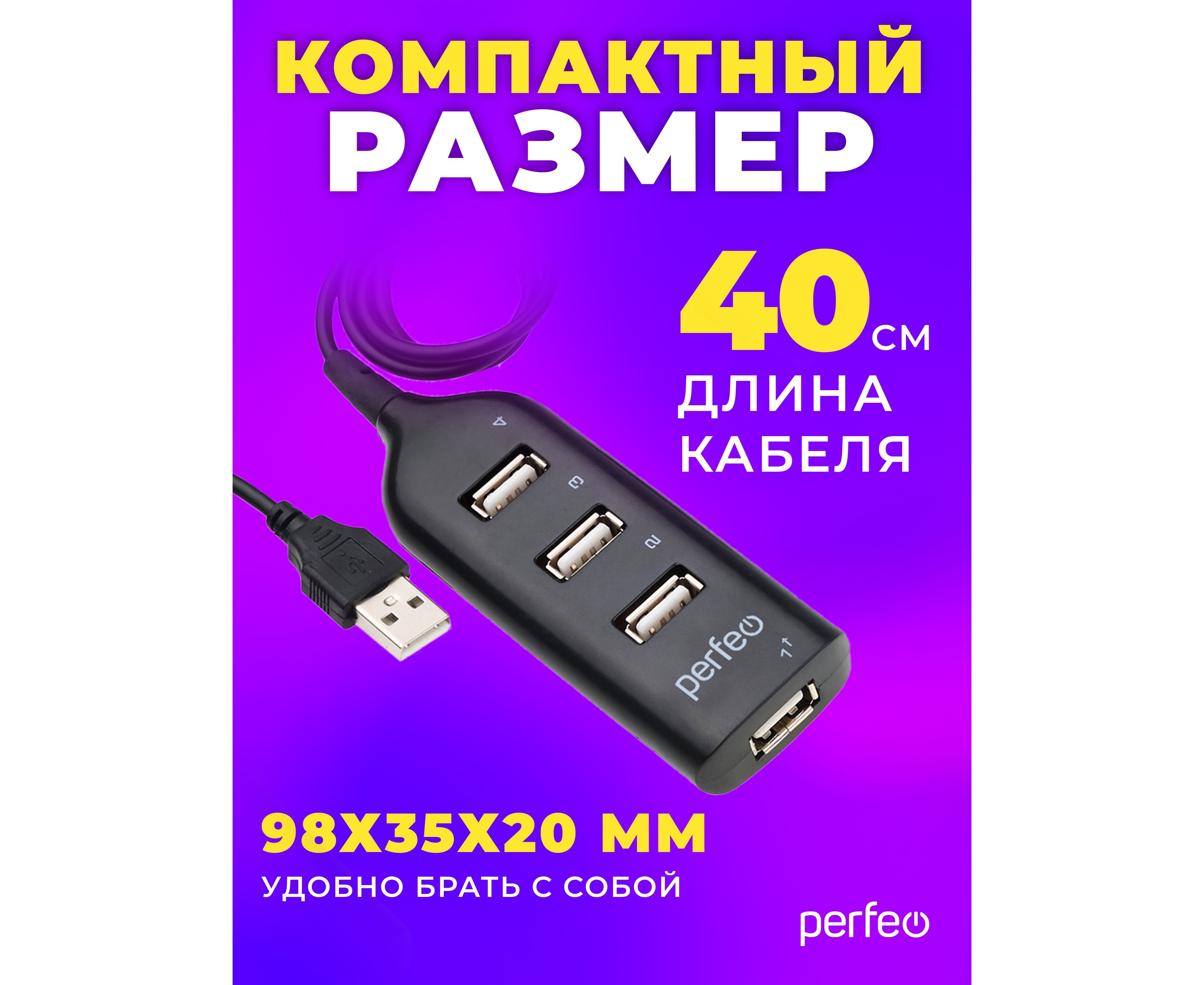ЮСБ-хаб Perfeo 4 Port, (PF-H049 Black) чёрный
