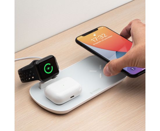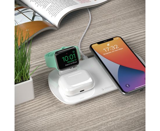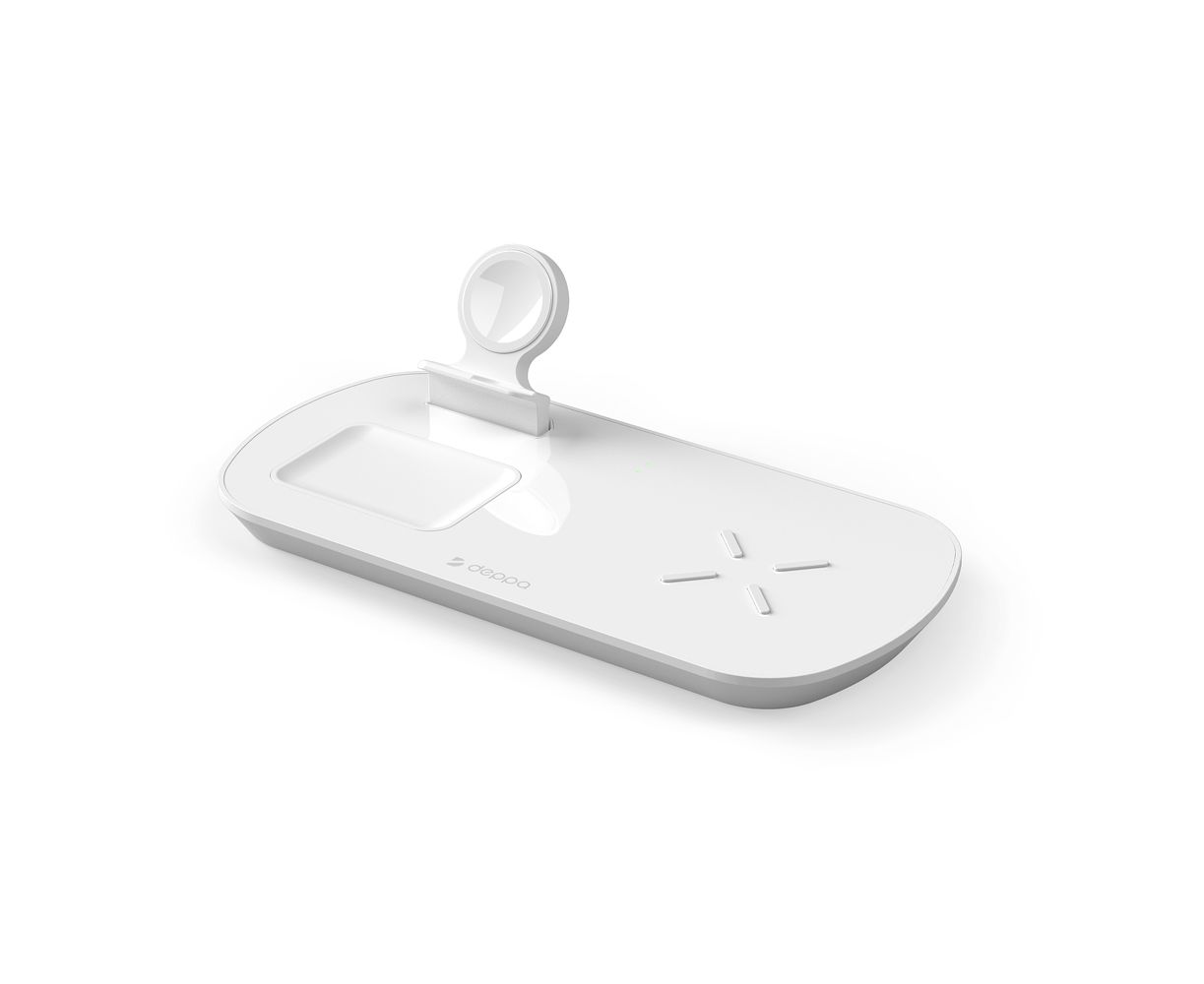 Зарядная станция 3 в 1: iPhone, Apple Watch, Airpods, беспроводная, 17,5 Вт, белая, Deppa, 24010