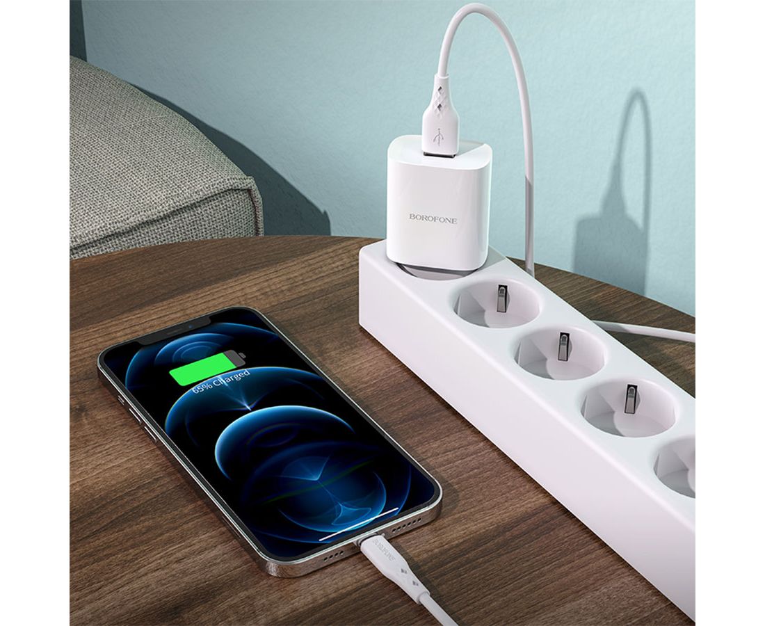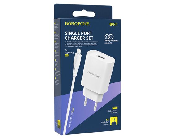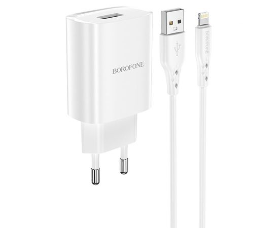 Сетевое зарядное устройство BOROFONE BN1 Innovative 1xUSB с Кабелем USB - Lightning, 2.1A, 5W, белый