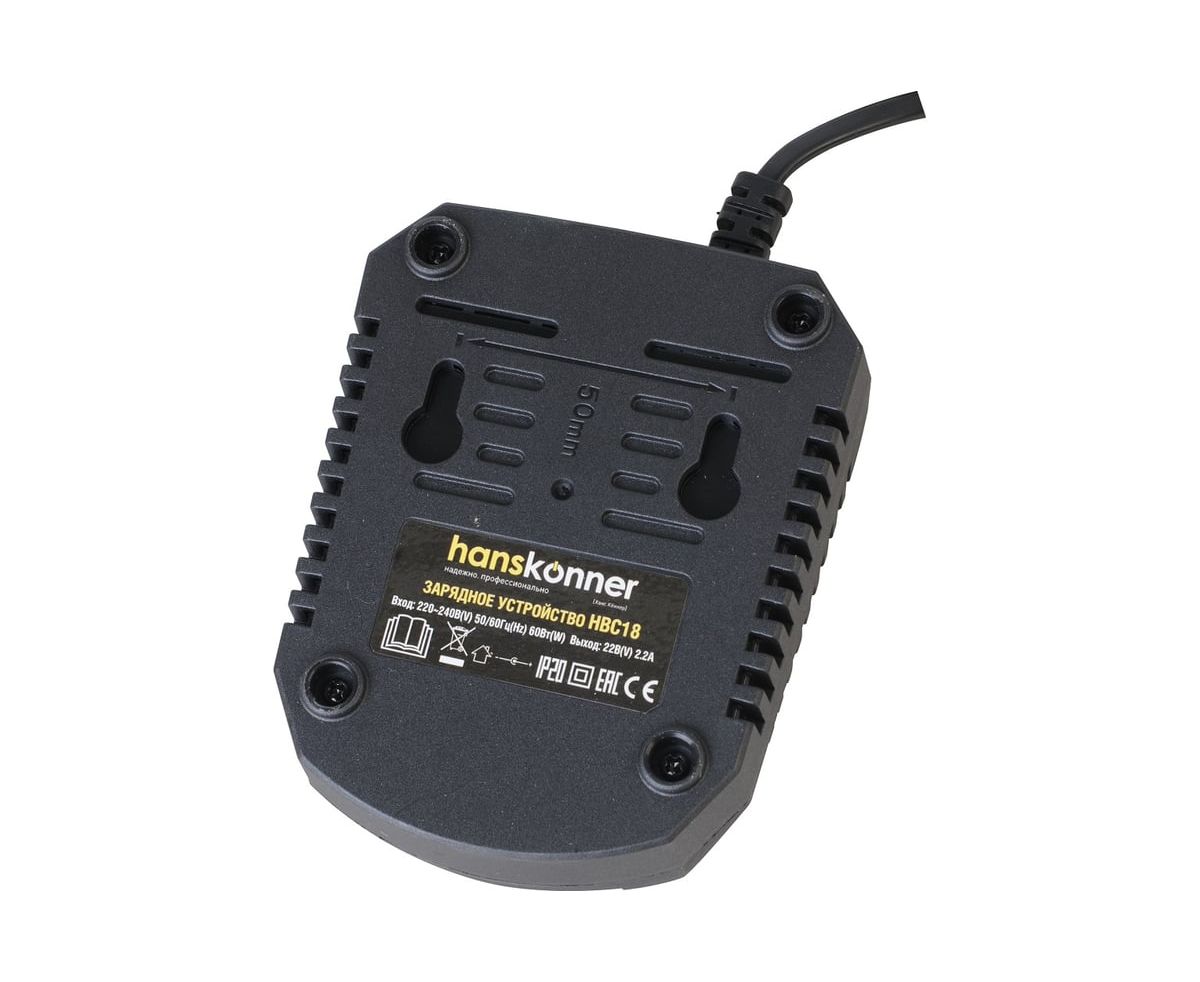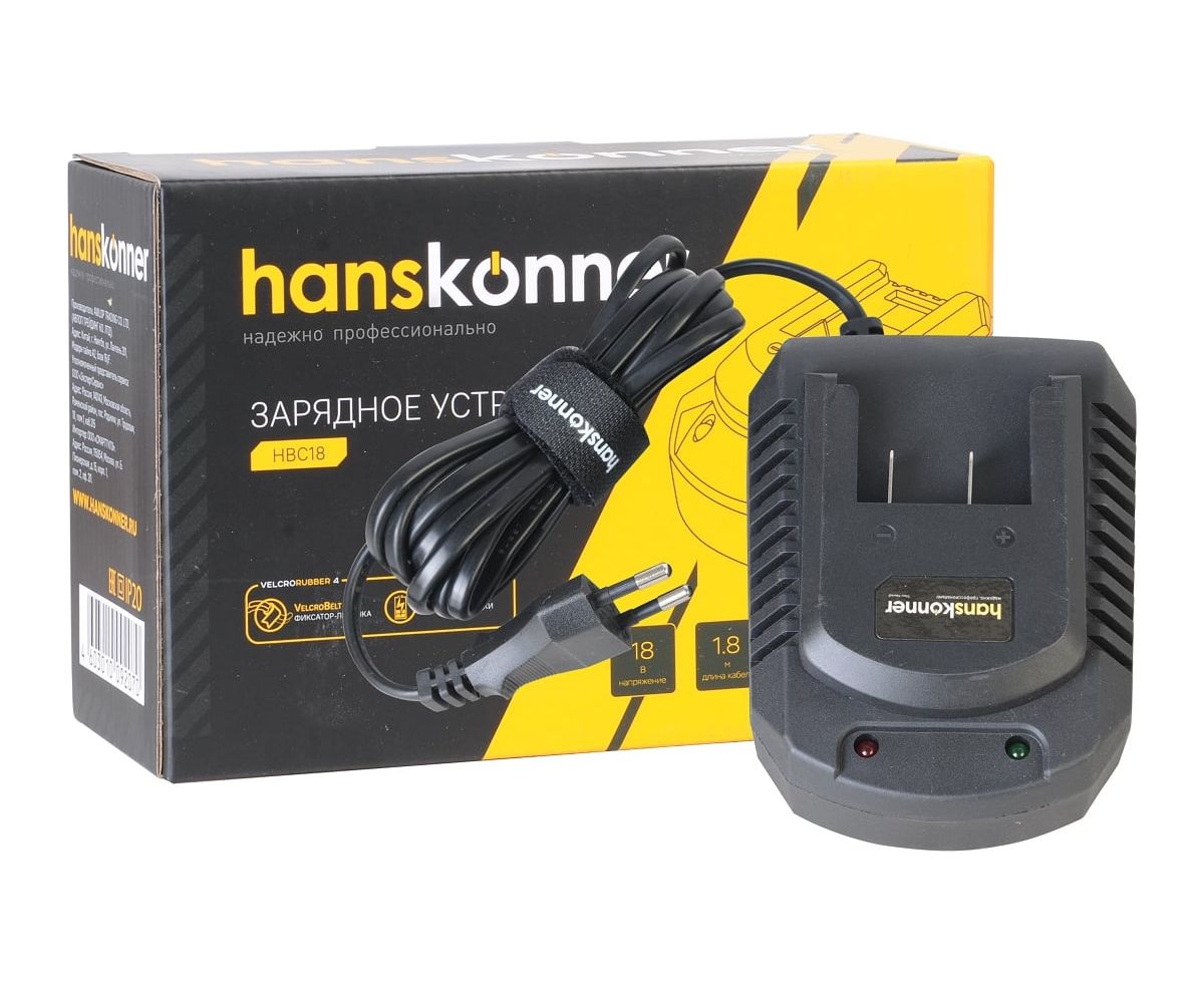 Зарядное устройство Hanskonner HBC18 предназначено для аккумуляторов HRH1824BL и HAG18125BL.
