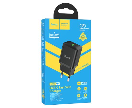 Сетевое зарядное устройство HOCO N26 Maxim 1xUSB, 3.0A, 18W, черный