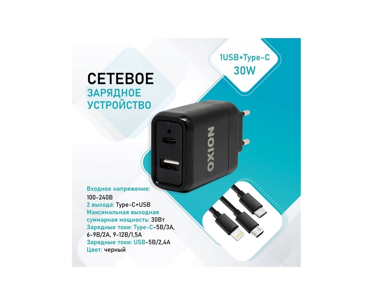 Зарядное устройство OX-QC302.,Черный