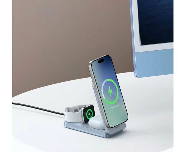 Зарядное устройство UGREEN W757 (55901) MagFlow 25W Magnetic Qi2.2 Wireless 3-in-1 Charger Starlight Blue