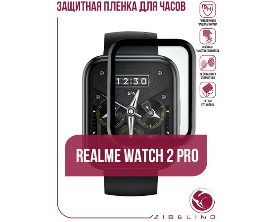 Защитная пленка для смарт часов Realme Watch 2 Pro с черной рамкой (Реалми Вотч 2 Про)