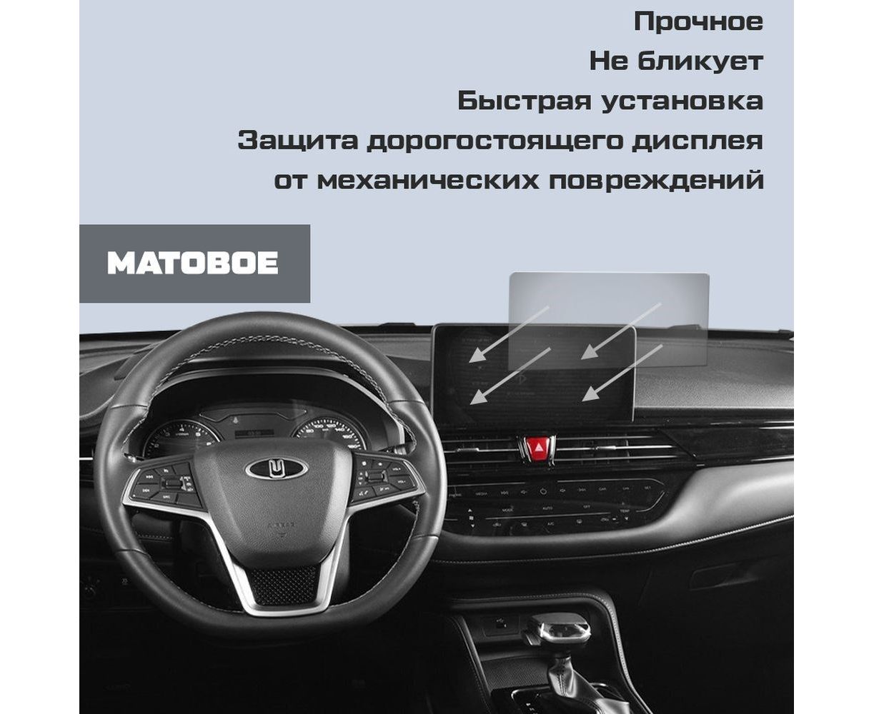 Защитное гибридное стекло МАТОВОЕ Krutoff для экрана мультимедии Москвич 3 2022