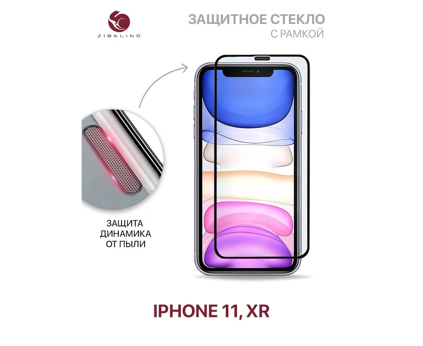 Защитное стекло Premium для Apple iPhone 11, XR с сеточкой, защитой динамика от пыли, с рамкой (Айфон 11 Хr)